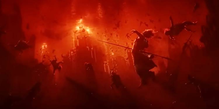 There were glimpses of the two trees Laurelin and Telperion and, by extension, the Undying Land of Valinor. There was also a moment that looked like Noldorian Elves taking the Oath of Fëanor. While those scenes were cool, the most compelling shot happened at the 1:12 mark. Galadriel told Elrond, "You have not seen what I have seen." Then, as if Galadriel was remembering an awful memory, there were dead bodies floating through a sea of red.