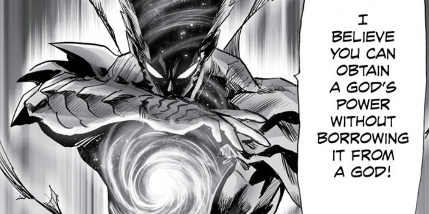 With a Zero Punch that travels back through time, it's becoming clear that Saitama's power has no upper limit, giving him godlike potential - indeed, Garou refers to this technique as "a god's power" while teaching Saitama to unlock it. It's also clear that time can be altered, or at least that individuals from one timeline can create a new one. With time travel in the mix, it doesn't matter that God pre-dates Saitama, as it could easily be a version of the hero who transcended time or reality and now sits outside them both. This concept is supported by many similarities that seem to invite a comparison between God and Saitama. The two are visually similar, with rangy bodies and bald heads, and both are able to extend their limbs through portals. Similarly, it's easy to see how God's willingness to lend out its power would result from Saitama's original obsession with finding a worthy challenger, especially if he lost his humanity and underwent the monsterification process. How better to create a real challenge than by learning to empower others (perhaps to train one's past self to become a worthy challenger)?