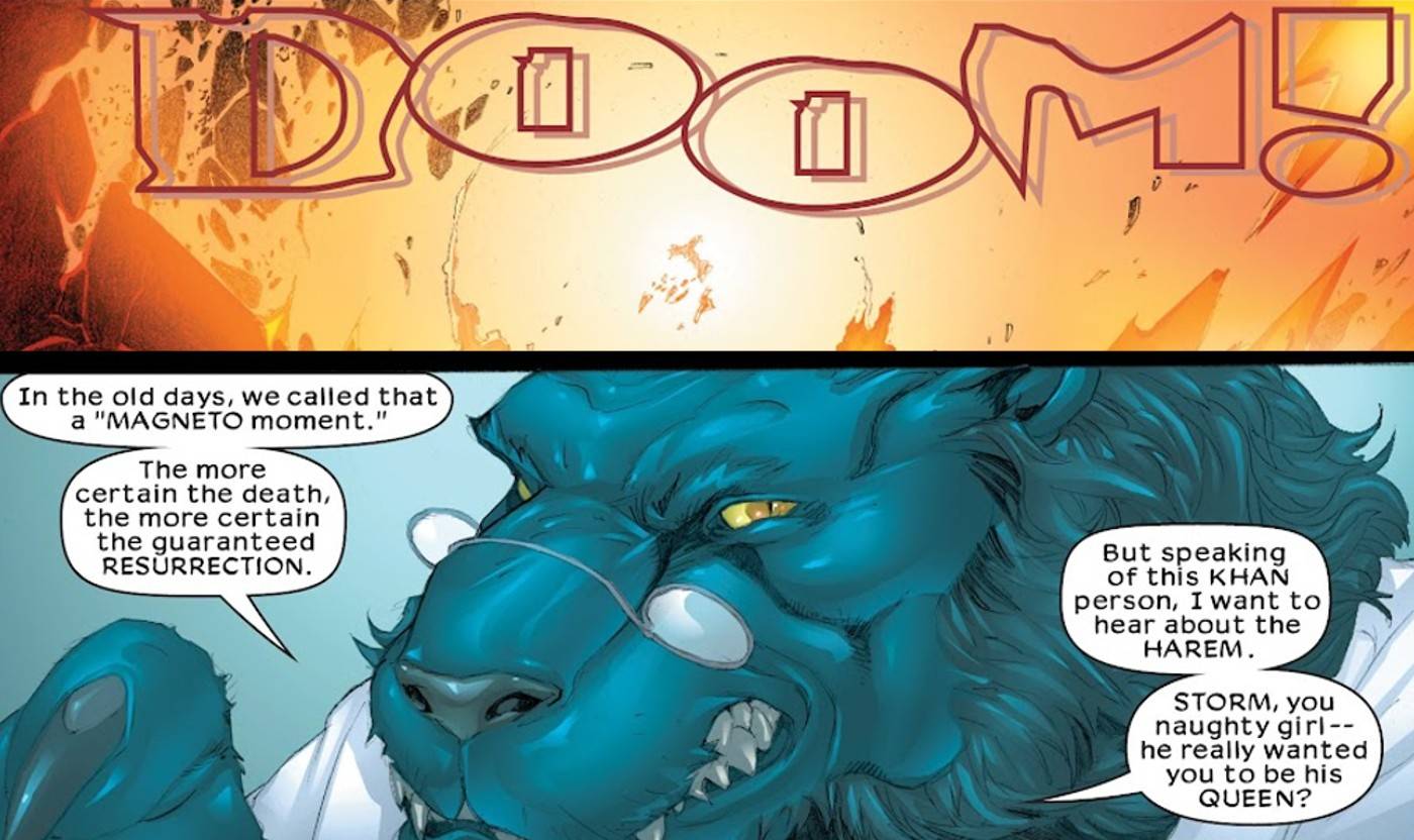 In X-Treme X-Men #19 - from Chris Claremont and Salvador Larroca - fans learn that the X-Men have a secret rule for occasions like Scarlet Witch's death where an imposing foe suffers a huge, operatic demise but their body isn't recovered. After an alien dictator is seemingly killed in his own exploding spaceship, Beast confirms the heroes should expect to see him again, revealing this is something the mutant heroes refer to as a 'Magneto Moment.' Beast explains, "The more certain the death, the more certain the guaranteed resurrection." The rule comes from the fact that Magneto has been seemingly killed in many inescapable and dramatic moments, only to return after his body is assumed vaporized or declared impossible to recover.