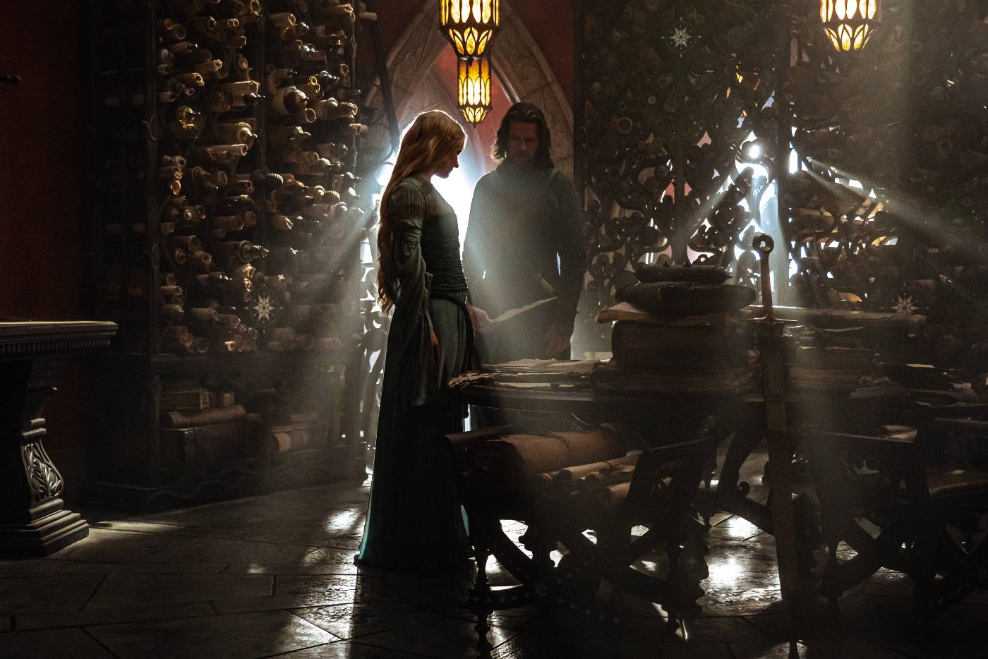 Back in Númenor, Elendil and his children catch up about the eventful day in a fire-bright courtyard. But Galadriel isn’t the only topic of discussion: As his far-off looks implied, Isildur wants to defer his sea trial. Elendil is not pleased; he wants his son to look forward, not back: “The past is dead. We either move forward or we die with it.”